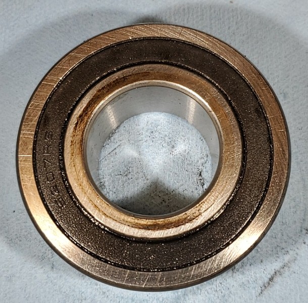 Total charging logged was 161.66 kWh for 2.046kWhr per ride. My service at home is $.0521/kWh so at that rate it works out to $8.42 total for electricity used for the whole season. The diesel would have cost $200 for the same use (at APR. $3.50/gal). Safe to say that the running cost of the electric is less than 1/10 of diesel. After fall haul out I disassembled the electric drive unit for inspection. I found some surface rust on the steel parts but everything came apart without any trouble. There was some oil residue inside the thrust bearing housing but I assembled it with some machine oil spread over all the surfaces. So I can't really tell if what I am seeing is from that or from lube leaking from the bearing seals. Seems like light oil and the bearing is lubed with grease. There was no apparent wear in the shaft or looseness of any kind anywhere. Everything was as snug as when I assembled it. The thrust bearing feels fine in the hand - smooth and true. There were no signs of binding or rubbing. Belt wear was minimal to unnoticeable. I found only a very small amount of black residue on the inner faces of the plates where the belt runs. There was some corrosion on the aluminum cover plate where I didn't properly coat the SS fasteners with Tef-Gel. Where I did use Tef-Gel everything was fine. Overall I would say everything came out in excellent shape with regard to wear but I need to attend a bit better to corrosion protection on the steel parts and where there is SS+Aluminum contact. I am glad I used SS for the shaft. I can get an SS version of the pilot bearing and I can get an SS threaded locking collar. That might be worth it to eliminate the nuisance of rust on those parts. The pulleys and their bushings will need to be coated better or painted. Maybe I'll spray then with McLube. I did that on my bronze stuffing box 18 years ago and it has held up perfectly. |