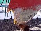 Does it really matter if the keel is properly blocked? You decide... Note the foam core on this keel fairing. I think this is a refit and not the OEM fairing. I think the OEM fairing was filled with resin and fibers using a chopper gun. |
