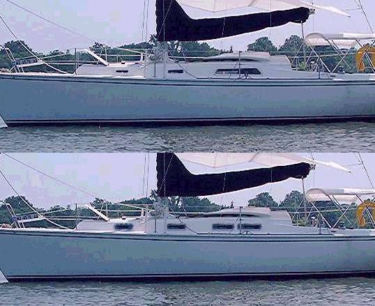 I picked up three very nice opening ports at a consignment shop in Annapolis. They are about 4x16 and have very secure dogs. The window is safety glass and the frames are all aluminum. The are labeled "Danish Boat Equipment" and bear a striking resemblance to the Bomar ports on a friends J/35 (except for the dogs). I did a little digital photo study to see how the ports would look on the boat.