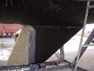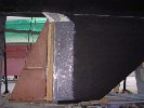 Number of lay ups varied to build up the juncture between the fairing & the lead keel. The 2-inch wide vertical recess in the lead casting, which the original fairing fitted in, was approximately 3/8 inch deep.