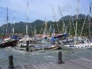 June and Garland Kitchens were tied to a dock in Telaga Harbor, Malaysia as the Tsunami of December 26, 2004 hit. Docks tore loose and boats were tossed around the harbor like bathtub toys. Swift lost it's keel fairing. The Kitchens repairid it at a yard in Phuket, Thailand and sent photos and documentation of the process they used.