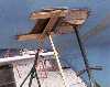 I followed the proceedure in the West System manual for patching a hole like this. I ground the surface aroung the hole to a 12:1 bevel on both sides. I cut circles of fiberglass material (biaxial with mat) in increasing sizes to fill in the bevel and a few to fit in the hole.