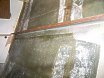Here is the forward side of the main bulkhead under the v-berth. This bulkhead separated the forward space from the two lockers to the left and right of the v-berth notch. The reinforcing rib runs almost to this bulkhead. It ends about six inches forward of it. |