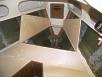 A layer of biax tabbing was added on the underside of the v-berth deck flange to stiffen it a bit more. On the forpeak bulkhead you can see where I started chipping off the formica to add tabbing. |