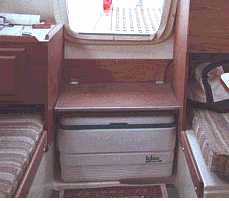This is a crude photo showing an Igloo cooler under the OEM step. I don't know what size it is and it looks like the step was raised a couple inches? But it's a pretty good fit.