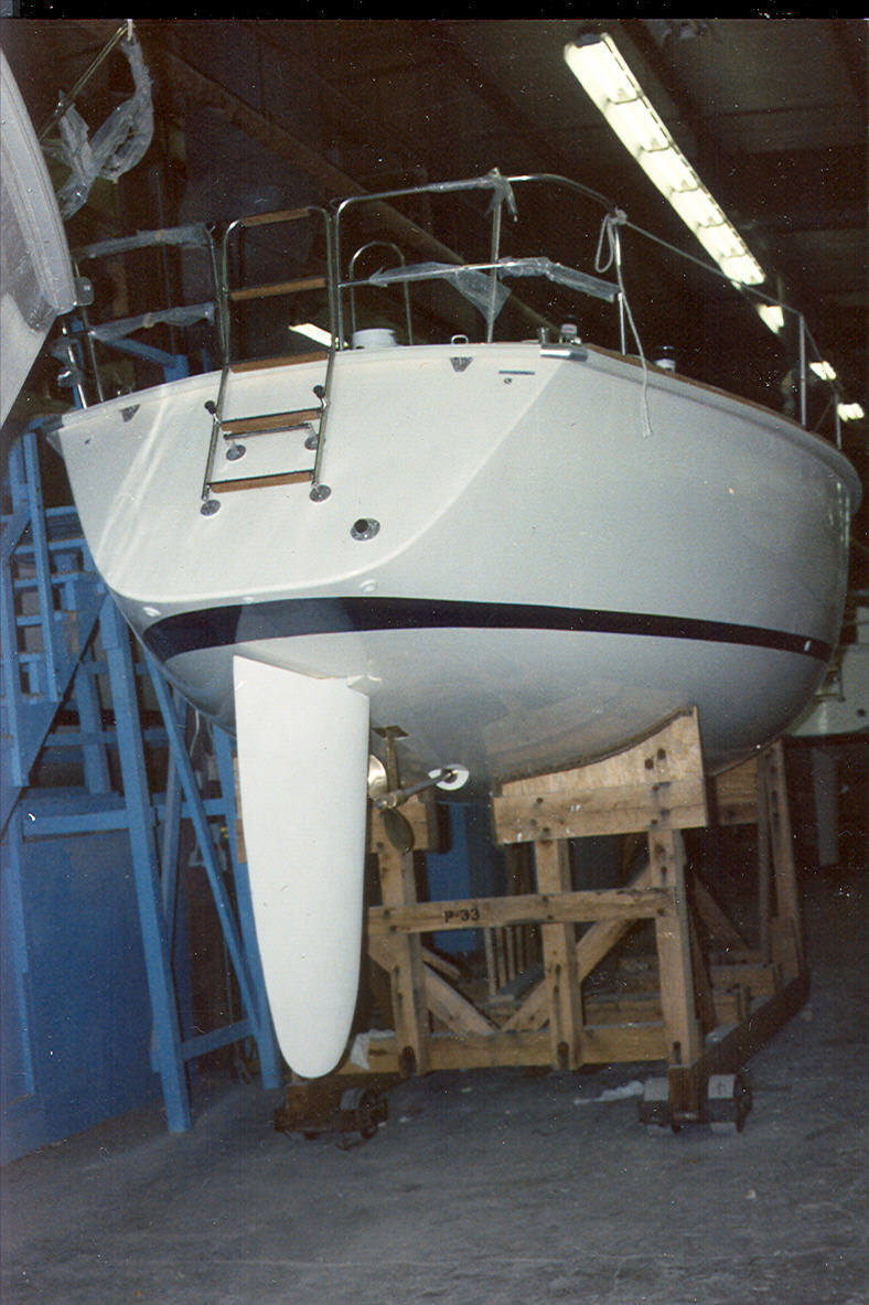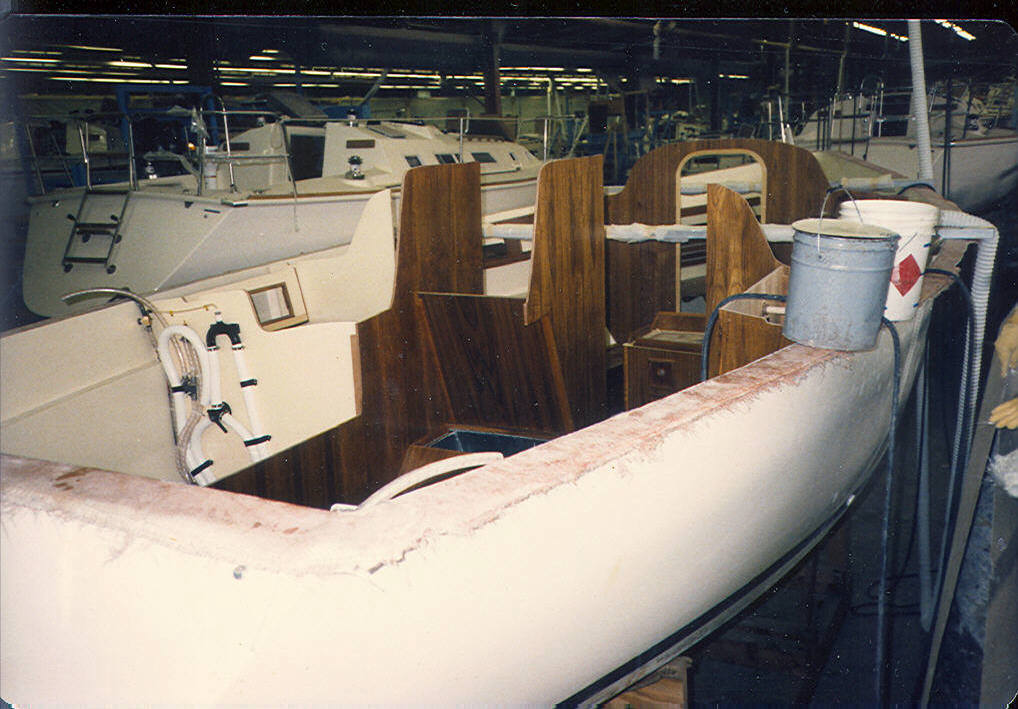 This is a wonderful collection of photos of Pearson 33-2 #37 being built at the Rhode Island factory in 1986. They were sent to me by Ed Pinanski the current owner of #37 "Querencia". Ed told me that the original owner lived near Portsmouth and arracged to make regular visits to the factory to follow the progress of the boats construction. We are so glad he took a camera with him and that he passed the photos on to Ed and that Ed passed them on for all of us to see. Thans a lot Ed.
