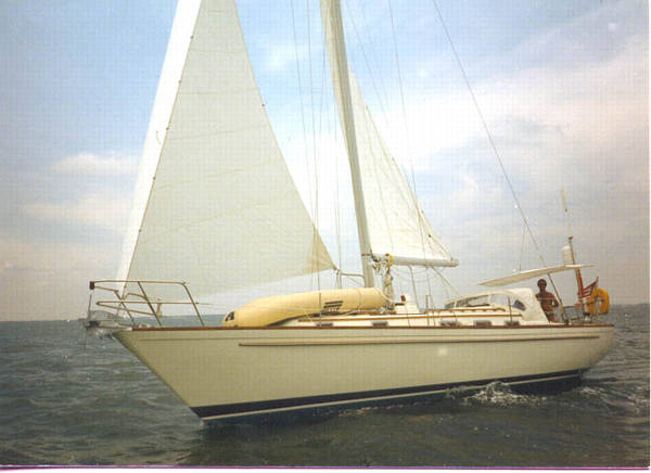 Designer Shaw Main Area 294 Hull Speed 7.34 First Year 1984 For Tri 390 SA/D 16.6 Last Year 1985 I 47.3 D/L 280 LOA 38.3 J 16.5 BR 41% LWL 30.0 P 40.5 L/B 3.30 Beam 11.6 E 14.5 LWL /B 2.59 Disp 16,915 Eng D OR 22% Draft 5.5 Fuel 45 CSF 1.81 Sail Area 684 Water 150 MCR 30.5 Ballast 7,000 Mast Height 52.0 M/F 0.75Info on Design Ratios
