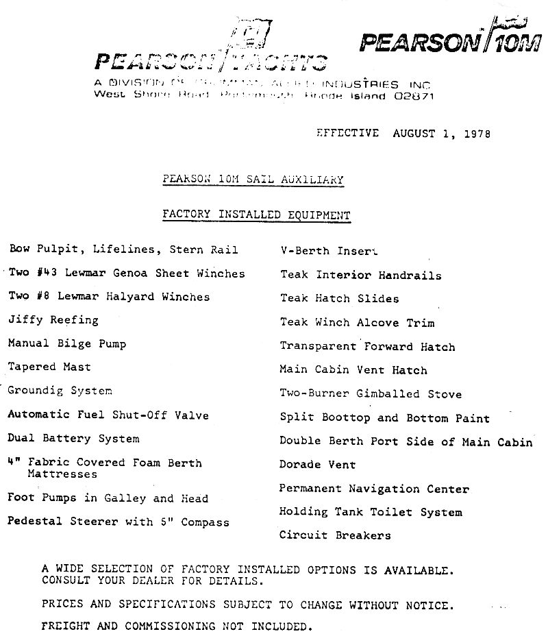 OEM Equipment Sheet (1978)