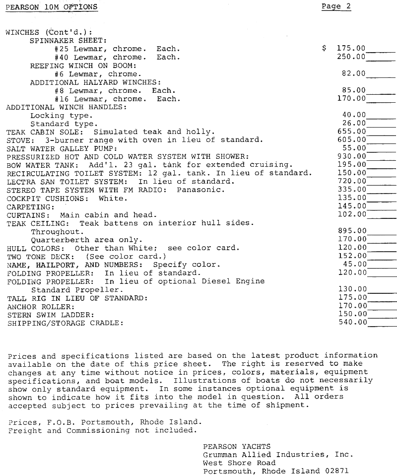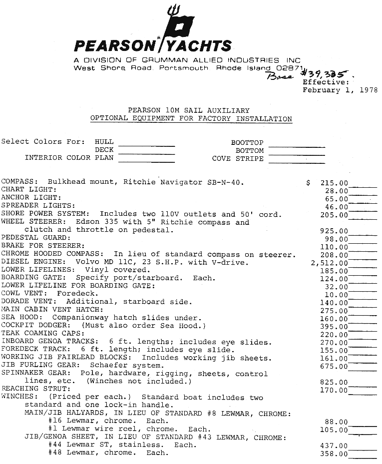 OEM Price Sheet (1978) Page 1 | Page 2