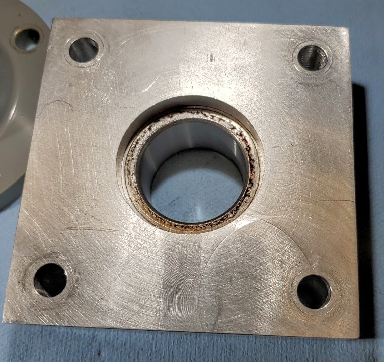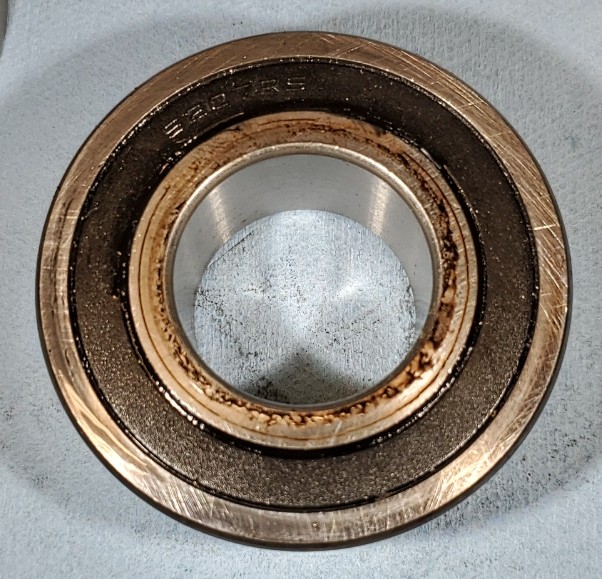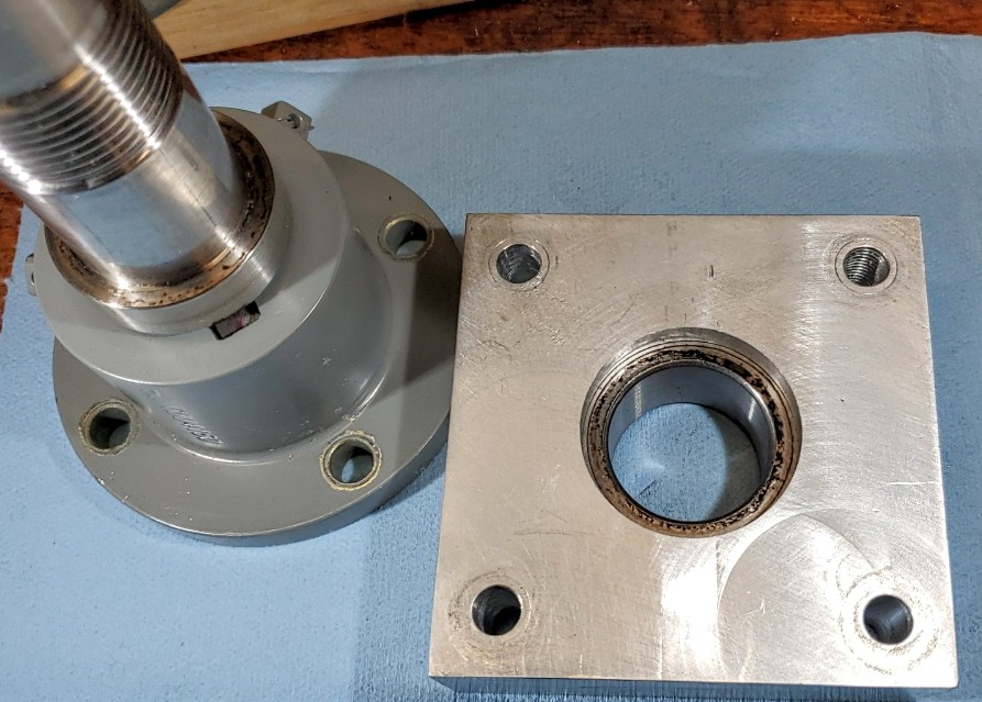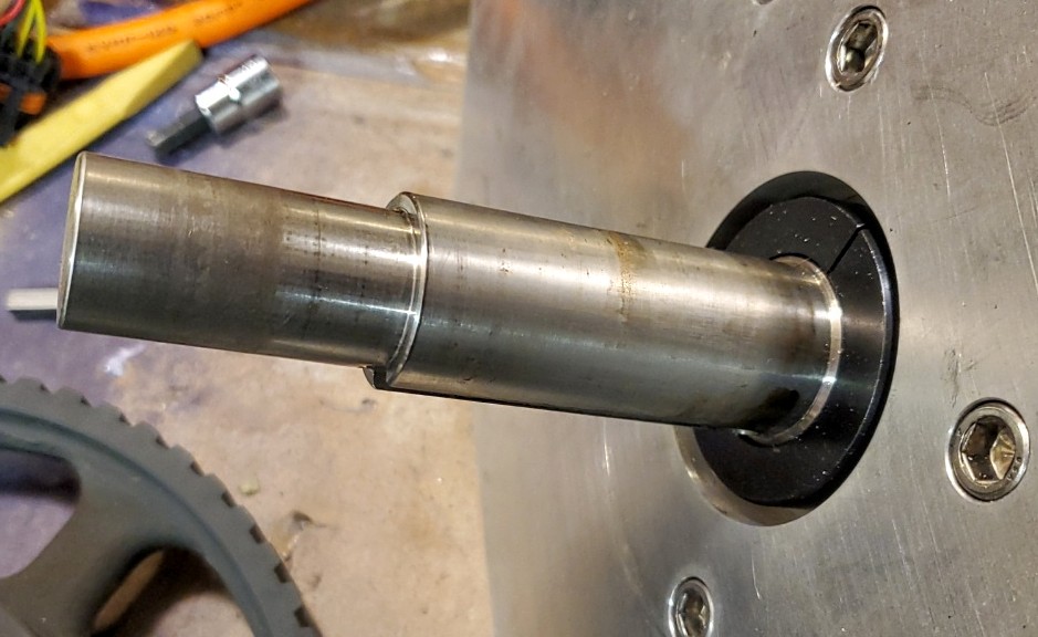 Total charging logged was 161.66 kWh for 2.046kWhr per ride. My service at home is $.0521/kWh so at that rate it works out to $8.42 total for electricity used for the whole season. The diesel would have cost $200 for the same use (at APR. $3.50/gal). Safe to say that the running cost of the electric is less than 1/10 of diesel. After fall haul out I disassembled the electric drive unit for inspection. I found some surface rust on the steel parts but everything came apart without any trouble. There was some oil residue inside the thrust bearing housing but I assembled it with some machine oil spread over all the surfaces. So I can't really tell if what I am seeing is from that or from lube leaking from the bearing seals. Seems like light oil and the bearing is lubed with grease. There was no apparent wear in the shaft or looseness of any kind anywhere. Everything was as snug as when I assembled it. The thrust bearing feels fine in the hand - smooth and true. There were no signs of binding or rubbing. Belt wear was minimal to unnoticeable. I found only a very small amount of black residue on the inner faces of the plates where the belt runs. There was some corrosion on the aluminum cover plate where I didn't properly coat the SS fasteners with Tef-Gel. Where I did use Tef-Gel everything was fine. Overall I would say everything came out in excellent shape with regard to wear but I need to attend a bit better to corrosion protection on the steel parts and where there is SS+Aluminum contact. I am glad I used SS for the shaft. I can get an SS version of the pilot bearing and I can get an SS threaded locking collar. That might be worth it to eliminate the nuisance of rust on those parts. The pulleys and their bushings will need to be coated better or painted. Maybe I'll spray then with McLube. I did that on my bronze stuffing box 18 years ago and it has held up perfectly. |