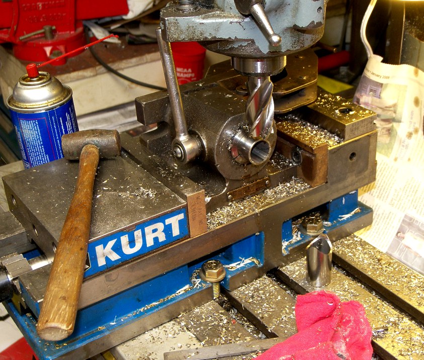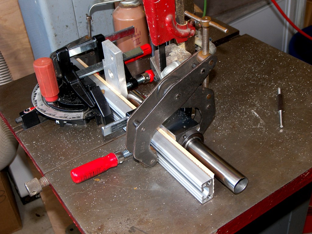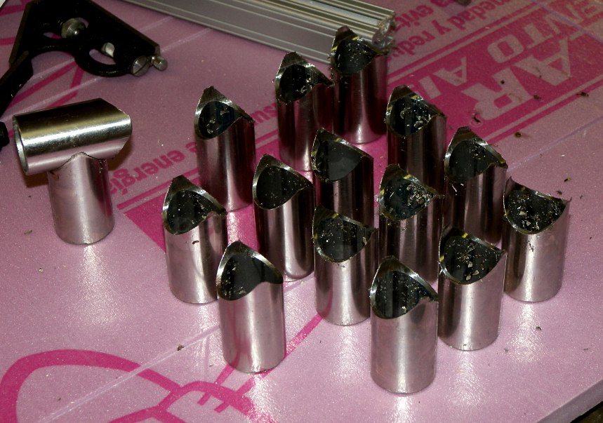 In my milling machine I used a 1" end mill to cut the saddle end that would hold the rail tube.