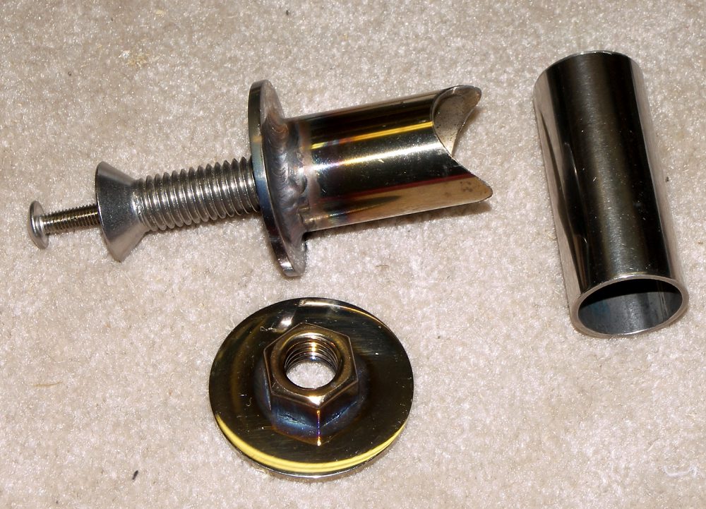 There are a few parts that make up the rails. The long rail, a standoff part that connects it to the deck (I called these the saddles), a base plate, and a nut. I fabricated the saddles from 065 SS tubing (from McMaster Carr). I found nuts that just fit inside the tubing and large thick washers to use as base plates.