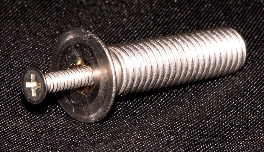 This is the handrail screw with the threaded hole in the center. This one used a 10-24 screw. I endesd up making them 10-32 after breaking some taps trying to use 10-24 in the 1-1/4" deep hole.