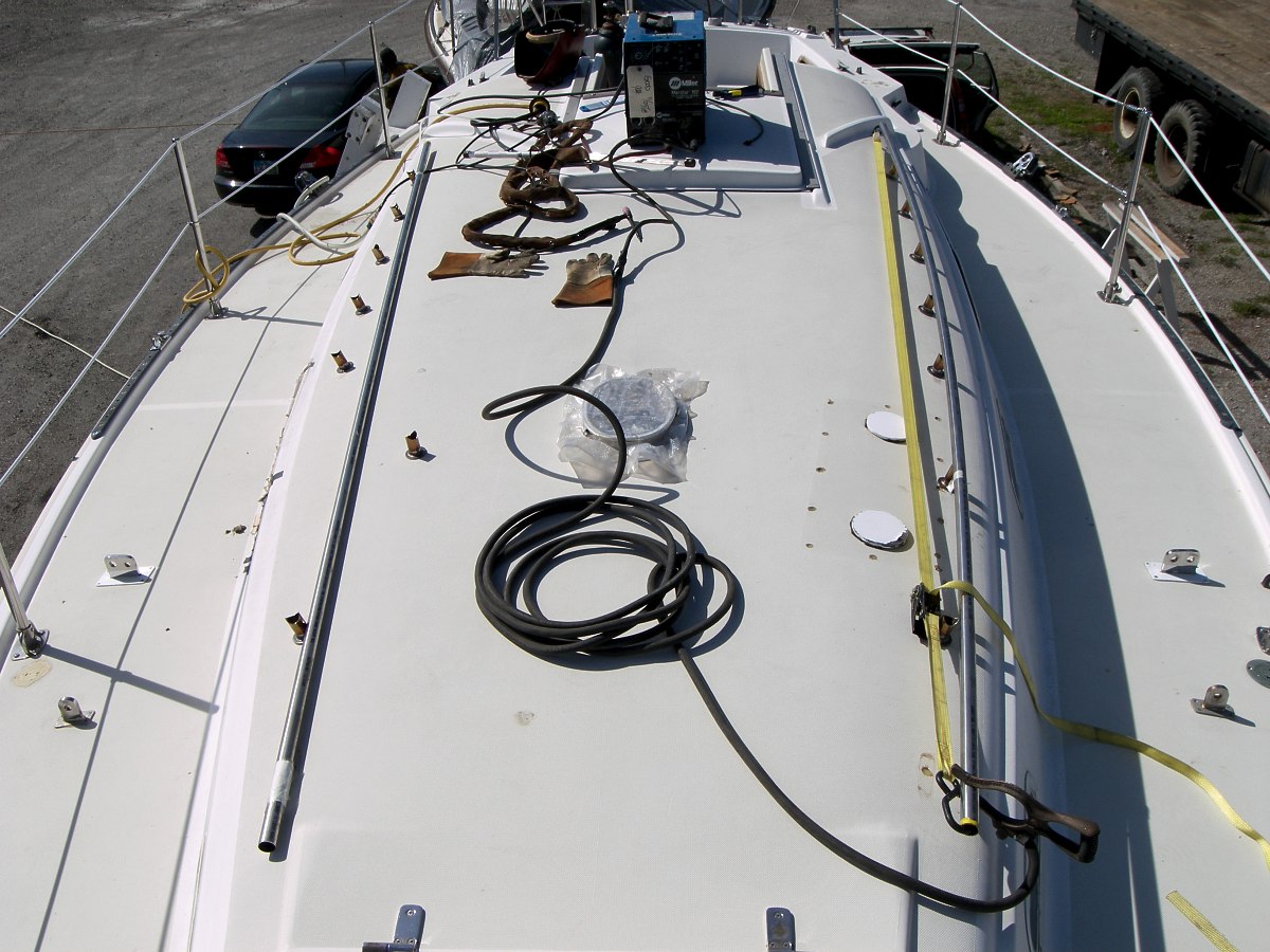 Most of the handrail mounting holes were dry. Some had leaked and there was wet balsa core around the holes. I dug out the wet core until I got to dry core.