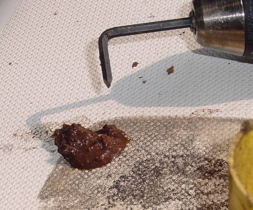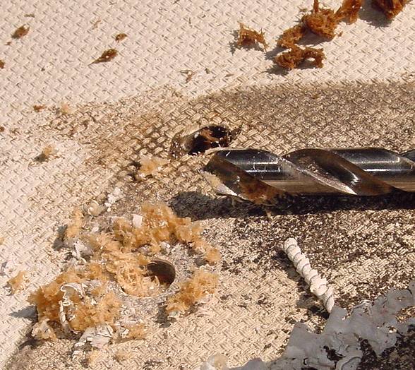 In some cases I had to drill additional holes to reach all the wet balsa. This is a typical problem when deck fittings leak and the core has not been protected.