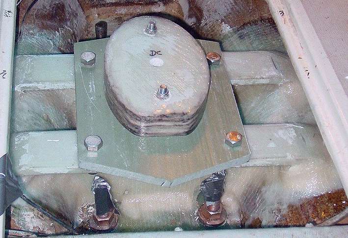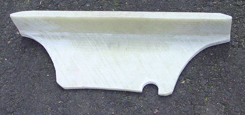 For installation the old steel step is unbolted from the keel bolts and discarded. The keel bolt nuts and washers are re-fastened. The cabin sole is leveled in both fore/aft and port/starboard directions by adjusting jack stands. A simple jig holds the two new floors properly positioned by a stop that contacts the front end of cutout in the cabin sole to set the fore/aft position. The new floors will need some trimming to fit the bilge profile, while still mounted to the jig plate. The jig plate must also end up level in both directions while fitting closely in bilge. The floors are fastened into the bilge with thickened epoxy. Once the epoxy has cured the jig plate is removed and the floors are tabbed in place with biaxial fiberglass tape and epoxy resin. The step plate with mast plug or socket is mounted to the floors and the step is ready for the mast. Before re-stepping a section of the mast corresponding to the change in height of the new step (over the old one) may be cut off or, rig could be raised 4-5 inches using toggles etc. This method uses two additional floors and thus improves keel to hull rigidity over the factory design (see note) almost as much as the floors in #212 but has the advantage of not having to remove a portion of the cabin sole to install. The mast plate attachment is simpler, and eliminates the two angle brackets used in #212. Graham will be able to supply a complete kit for this much improved mast step. Kit contains four main fiberglass components: Two solid fiberglass floors, a fiberglass step plate, and a plug that fits snugly inside the mast, which is bolted to the step plate. Note: There is nothing inherently wrong with the keel to hull rigidity in the 10M as it came from the factory. Adding new floors to support the mast has the added effect of increasing keel to hull rigidity but that is not the purpose of the design nor is it a necessary modification. |