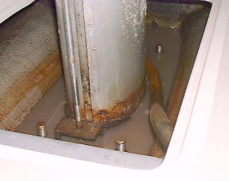 The 10M has a steel mast step that is subject to corrosion problems. I have seen a few with corrosion but I have also seen some that were aluminum. They may have been refits or it may be that some came with an aluminum step. The steel step in combination with the aluminum mast sitting in often salty bilge water create a galvanic corrosion cell. The aluminum of the mast gets eaten away. On my 10M I raised the step out of the bilge on two new fiberglass floors (transverse beams). I fabricated a new step from fiberglass. Mast Step Project |