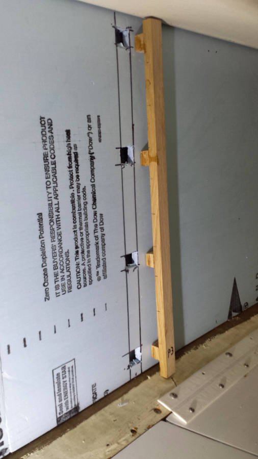 I glued the foam to the hull with construction adhesive and then glued the ribs to the hull through the square holes with epoxy. I cut slits in the back of the ribs to make them bend more easily to the shape of the hull. When I glued the ribs in I had some spring poles to press them to the hull until the epoxy set. Then I cut more sections of 1/2" foam board to fit between the ribs for a total of 1" of foam board. That's good for about R5. I glued the foam board inserts to the foam board that was already there.