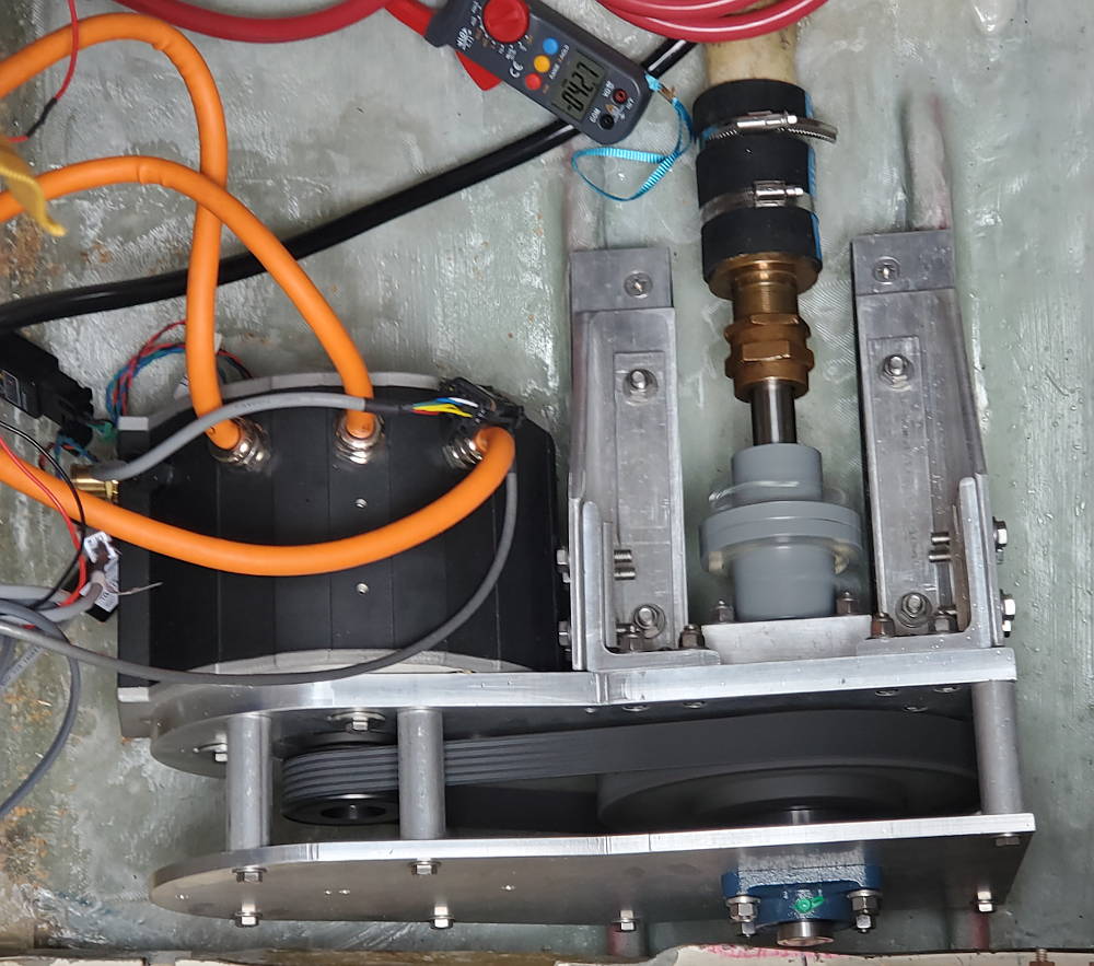 Electric drive unit installed in place of diesel and Walter v-drive.