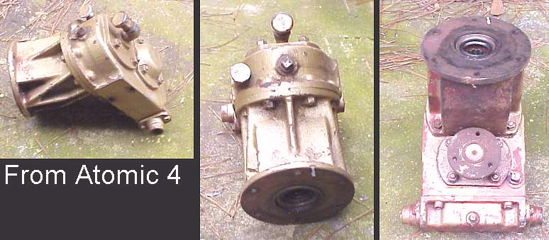 In late January 2003 I located a used RV10D on the Internet thanks to a Google search. The unit had come from a C&C with an Atomic Four. Looking at the drawings and parts lists for the RV10D it looked to me as though the difference between my unit and the A4 unit was the angle housing and the input yoke on the spicer cv joint. I took a chance and bought the unit for $125. When I received it and looked it over everything matched except the cooling water tube housing on the bottom. The casting of that part was different but that would not be a problem for fit. The unit seemed to be in excellent shape internally and I figured at the lest I had a good set of internal parts. I test fit the angle housing and all seemed fine. All it seemed I needed to do was swap the spicer yoke and mount my old angle housing and I was good to go.