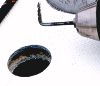 Using the deck fitting as a template I drilled four holes 5/32 for the mounting screws. I drilled through the outer skin and the epoxy filler but not through the inner skin. I tapped the holes for 10-24 machine screws with a bottom tap (a tap that cuts threads to the bottom of a hole) and cut four fasteners to the right length with the bolt cutters in my wire crimping tool (they are easy to cut). Using my Dremel/sander I cut a chamfer in the top edge of the big hole as a reservoir for sealant. I cut similar chamfers on the screw holes with a counter sink bit (seen in the photo). I applied a 1/4" bead of Life Caulk (polysulfide) around the inner edge of the deck fitting base and a drop to each screw hole and fastened the fitting down. I fully tightened it right away. Typically with sealant jobs you just snug and wait for the sealant to set then tighten down. But when sealing with threaded holes as I did that would tear the sealant so I tighten fully from the start.