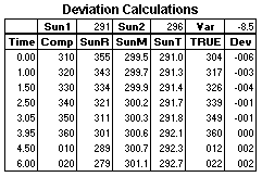 You only need to find the azimuth for the first and last observation then you can interpolate for the ones in between. I set it up in a spread sheet. The azimuth gives you a true bearing to compare the compass bearing to. You can get the local variation from your chart (I figure you have a chart because if you are the sort that doesn't you won't give a squat about correcting your compass). The true heading is the sun azimuth - the sun relative bearing. Add the variation to this to get the magnetic heading. Compare this to the compass heading to get the deviation. It's really pretty simple, you just have to be careful to keep track of the angles.