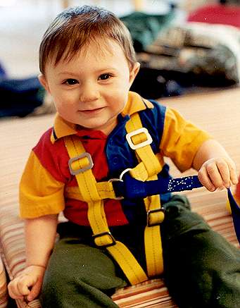 Alex in his harness - Click for Enlarged Image Tether Attachment