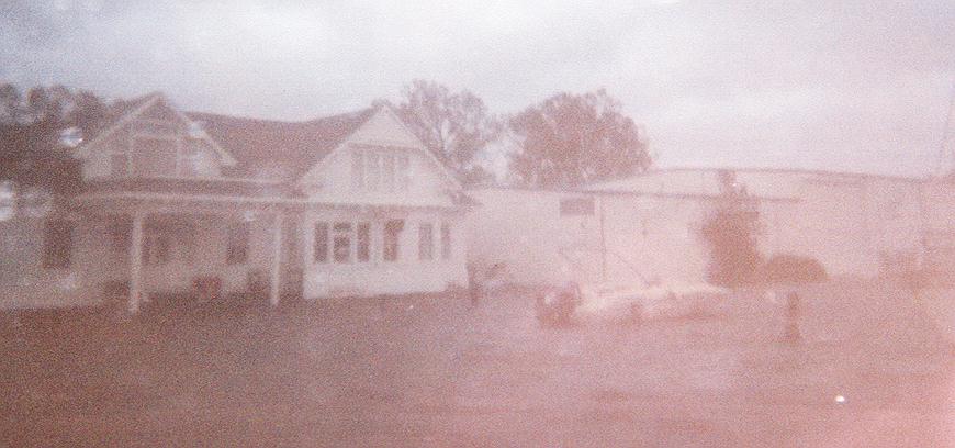 | More High water on the marina building at about 5PM. Stairway has been washed to the left. Coke machines are half submerged. |