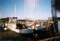 | High water on the dock at about 5PM. Note the heeling sailboats and a furling sail has come un-furled. |