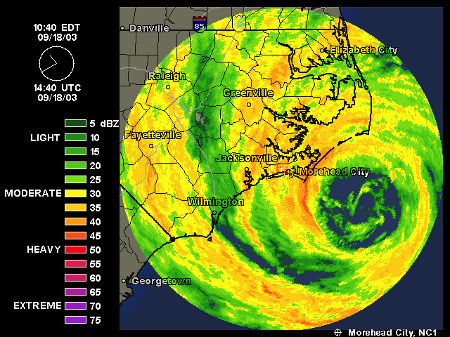 | Nexrad Radar from Morehead city at about 10:20 AM. |