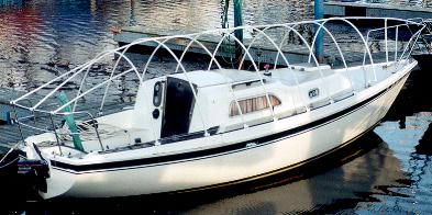 These photos show the PVC cover frame I built in the fall of '96. The frame is all 3/4" schedule 40 PVC and there are no metal fasteners used. The frame is attached to the T-track with 3-way PVC connectors that I slotted to fit the track. They slide on the track like a car and were easy to make with a hacksaw and a dremel tool with a sanding head. The longest lateral bow is 154". All of the bows that are longer then 10' were spliced together by inserting a 10" slotted 1/2" PVC section. The slot allows it to squeeze into the 3/4" PVC for a snug fit. The longitudinal sections are short pieces connected to the bows with 4-way PVC connectors that I reemed out with the dremel to slide over the bows. (See the Maintenance Log for 11/27/96 - 12/7/96)
