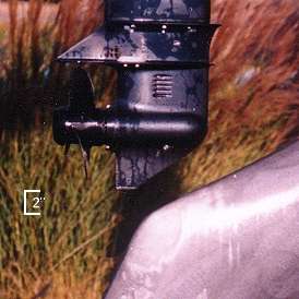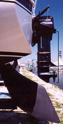 Close up photo showing engine/rudder clearance