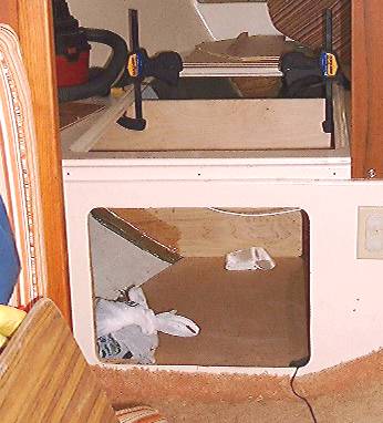 2/2002 - I added some more photos that show the locker project closer to completion. I finished off the locker before selling the boat in the spring of 2002. This space is really big and is a great place to store all sorts of stuff including small children and sails.