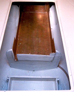 | This photo shows the floor panel of the locker in place. I added a screw out deck plate in the floor panel to access the speedo impeller below. |