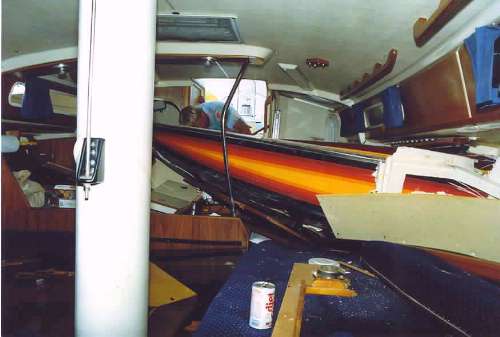 (Note also that the bulkhead separating the head in the aft port side of the boat has been torn off. - DHP)