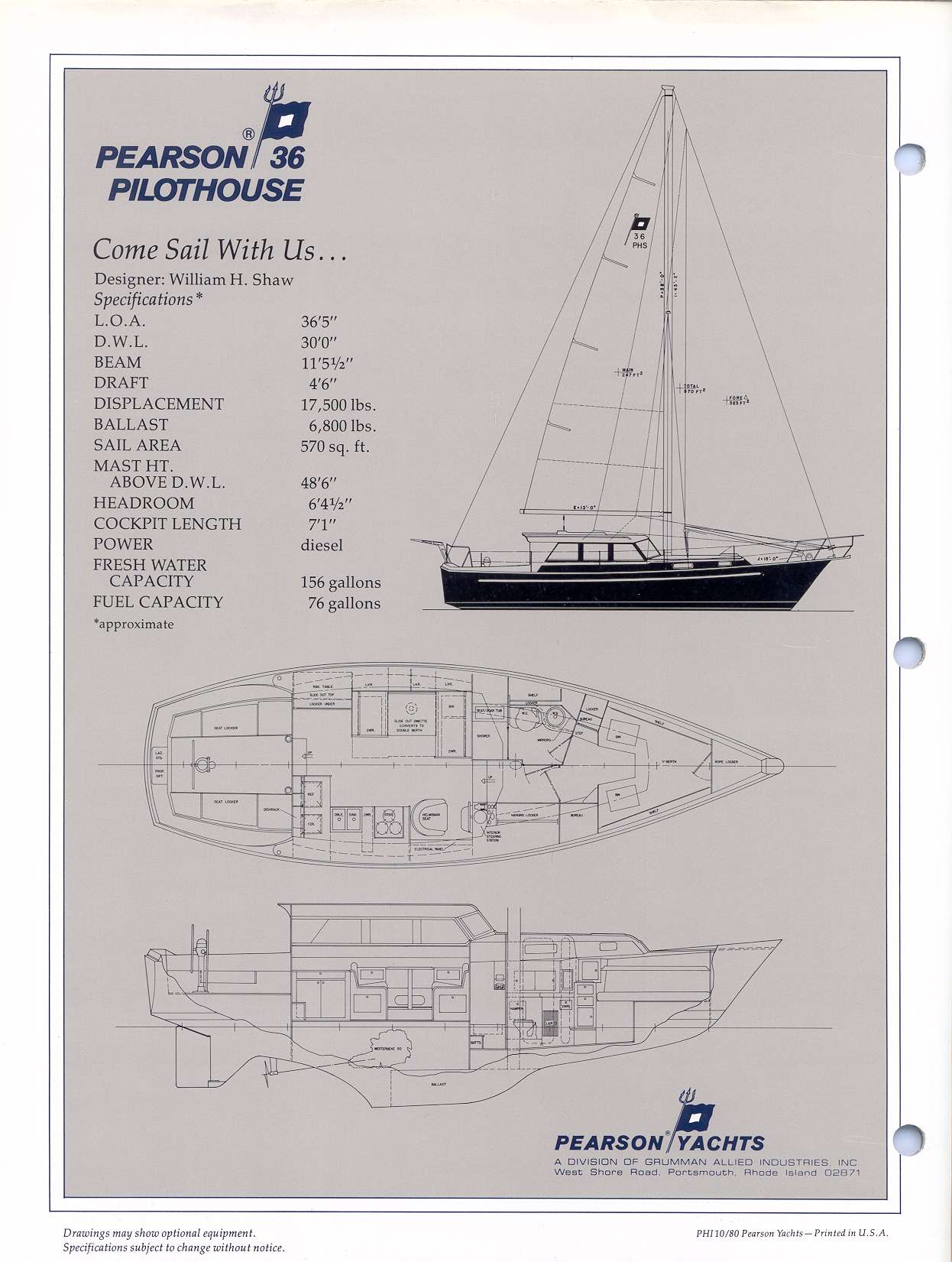 Pearson 36 Pilot House Original Sales Brochure
