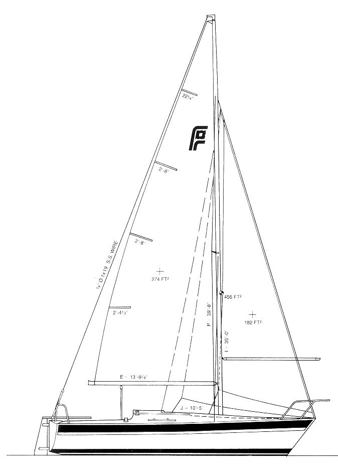 Designer Shaw Main Area 273 Hull Speed 6.70 Model # 68 For Tri 182 SA/D 21.5 First Year 1981 I 35.0 D/L 178 Last Year 1983 J 10.4 BR 43% LOA 29.9 P 39.5 L/B 2.70 LWL 25.0 E 13.8 LWL /B 2.26 Beam 11.1 Eng D OR 16% Disp 6,235 CSF 2.41 Draft 5.8 MCR 14.7 Sail Area 456 M/F 1.50 Ballast 2,700 PHRF 144Info on Design Ratios