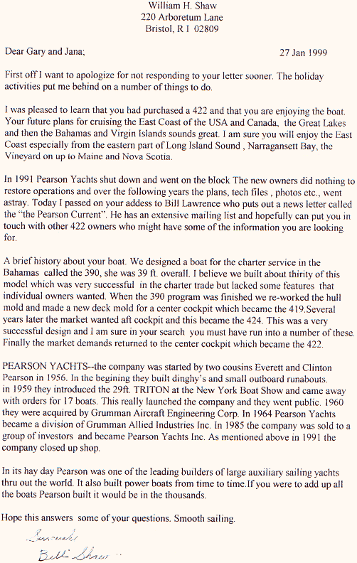 Bill Shaw letter on Pearson and on the 390/419/424/422